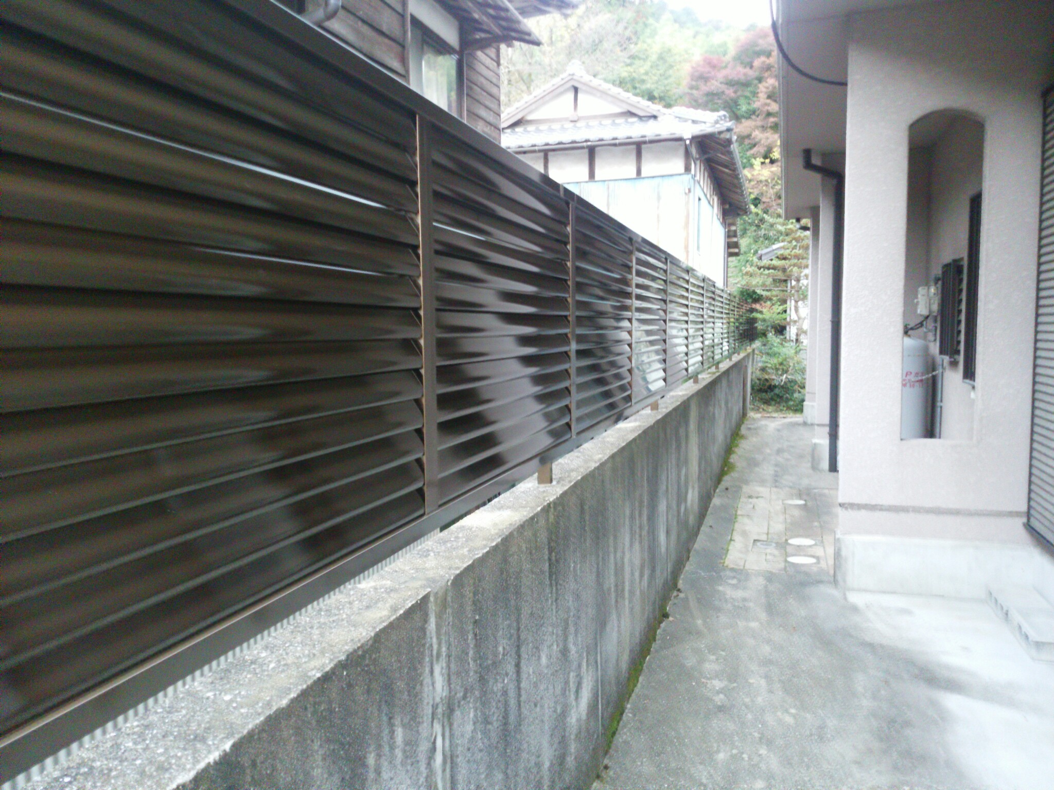 隣家との境の既存ブロック塀に目隠しフェンスを設置しました。